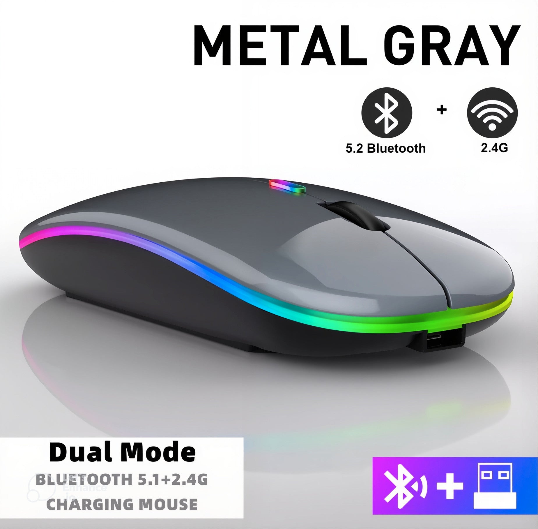 Rechargeable RGB Backlight Bluetooth Wireless Mouse for iPad PC Laptop Tablet 2.4GHz USB Mouse